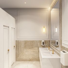 Sảnh chính của tòa nhà được thiết kế rộng rãi, thoáng đãng với các vật liệu cao cấp như đá cẩm thạch và kính, tạo nên không gian sang trọng và hiện đại. Hệ thống chiếu sáng thông minh và các yếu tố trang trí tinh tế góp phần tạo nên một môi trường đẳng cấp, phù hợp với vị thế của một tòa nhà văn phòng hạng B+ tại trung tâm thành phố.
